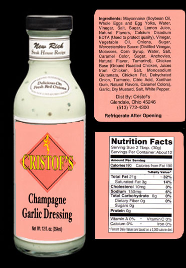 credit card via PayPal - It's Fast, Safe and Secure! Order Creamy Champagne Garlic Dressing $4.00 ![]() |